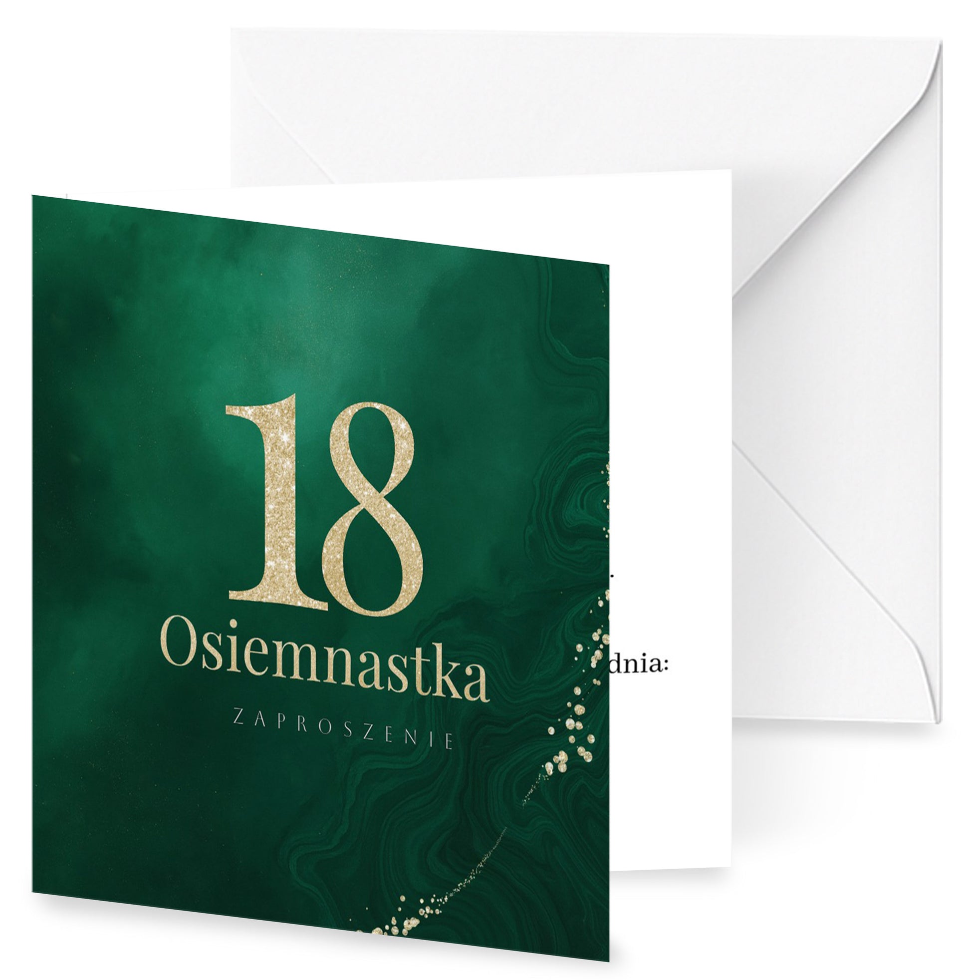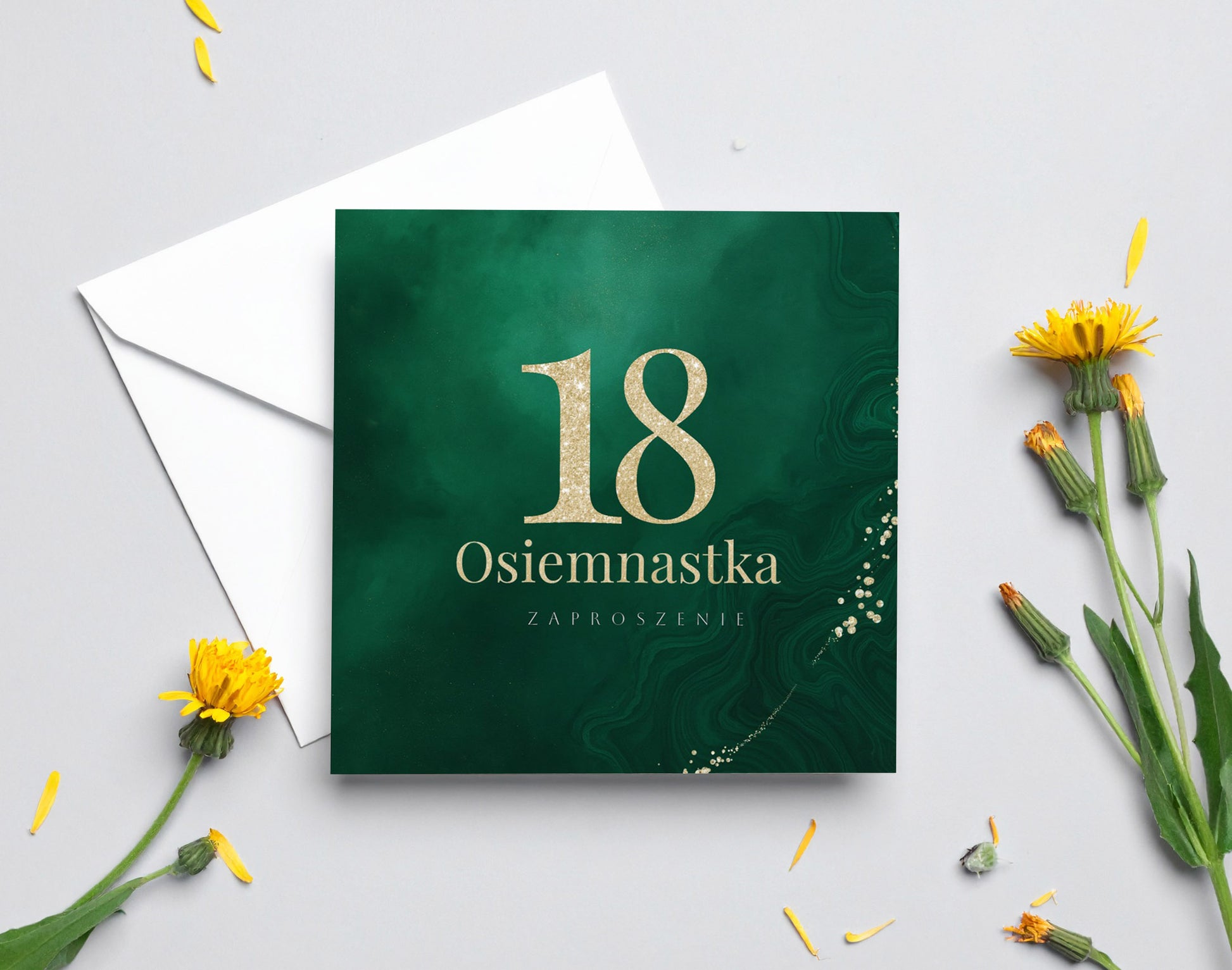 Zaproszenie na 18 urodziny 15x15 z kopertą - Butelkowa zieleń