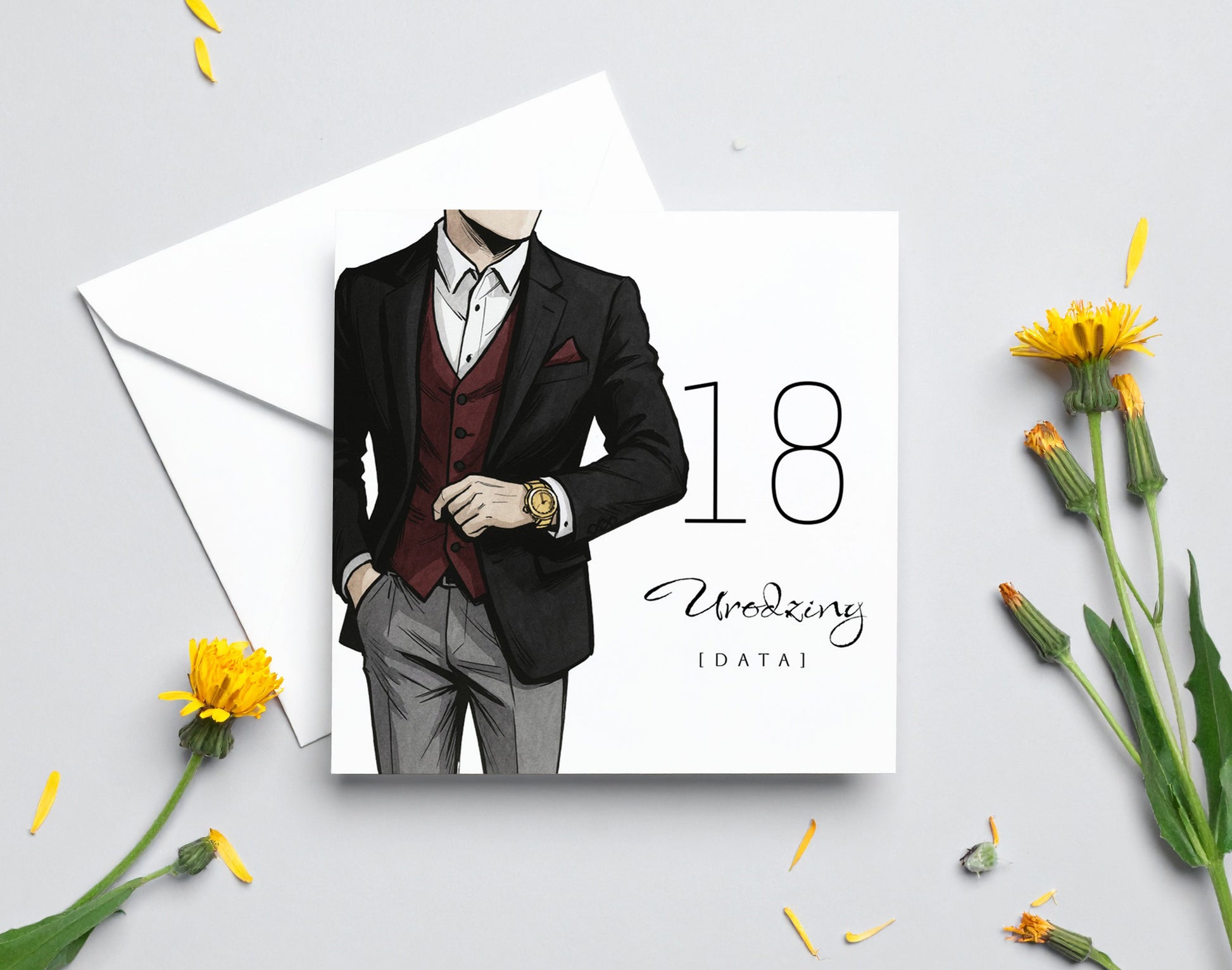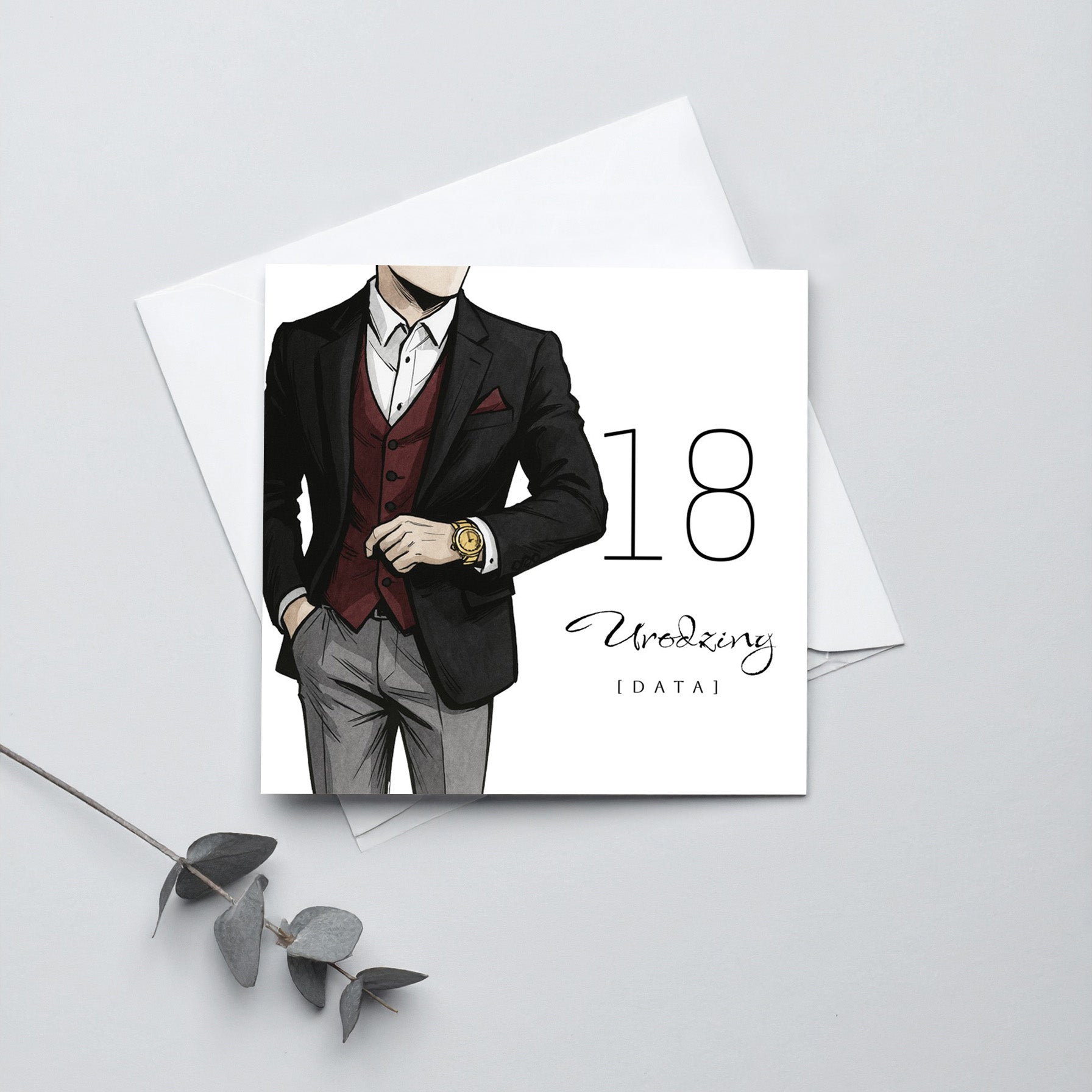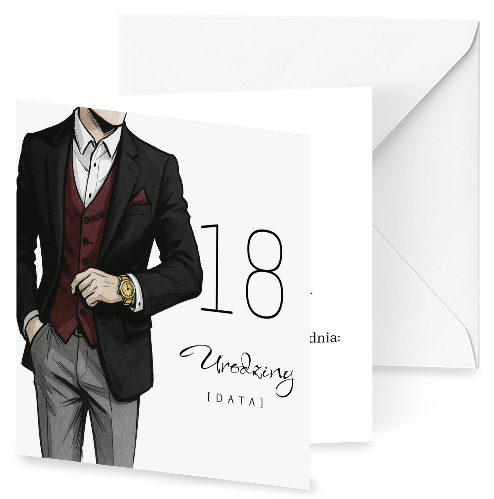 Zaproszenie na 18 urodziny 15x15 z kopertą - Garnitur męski
