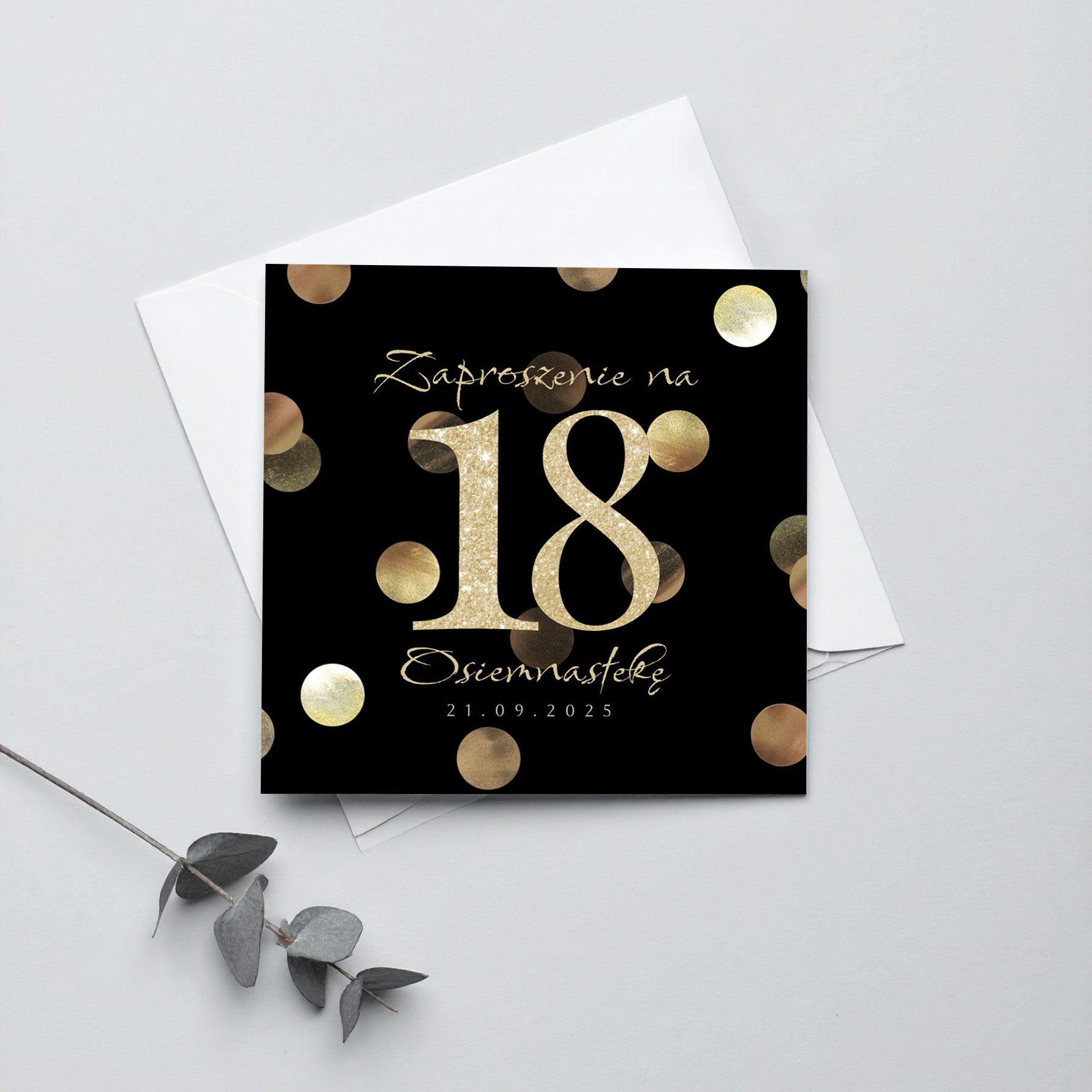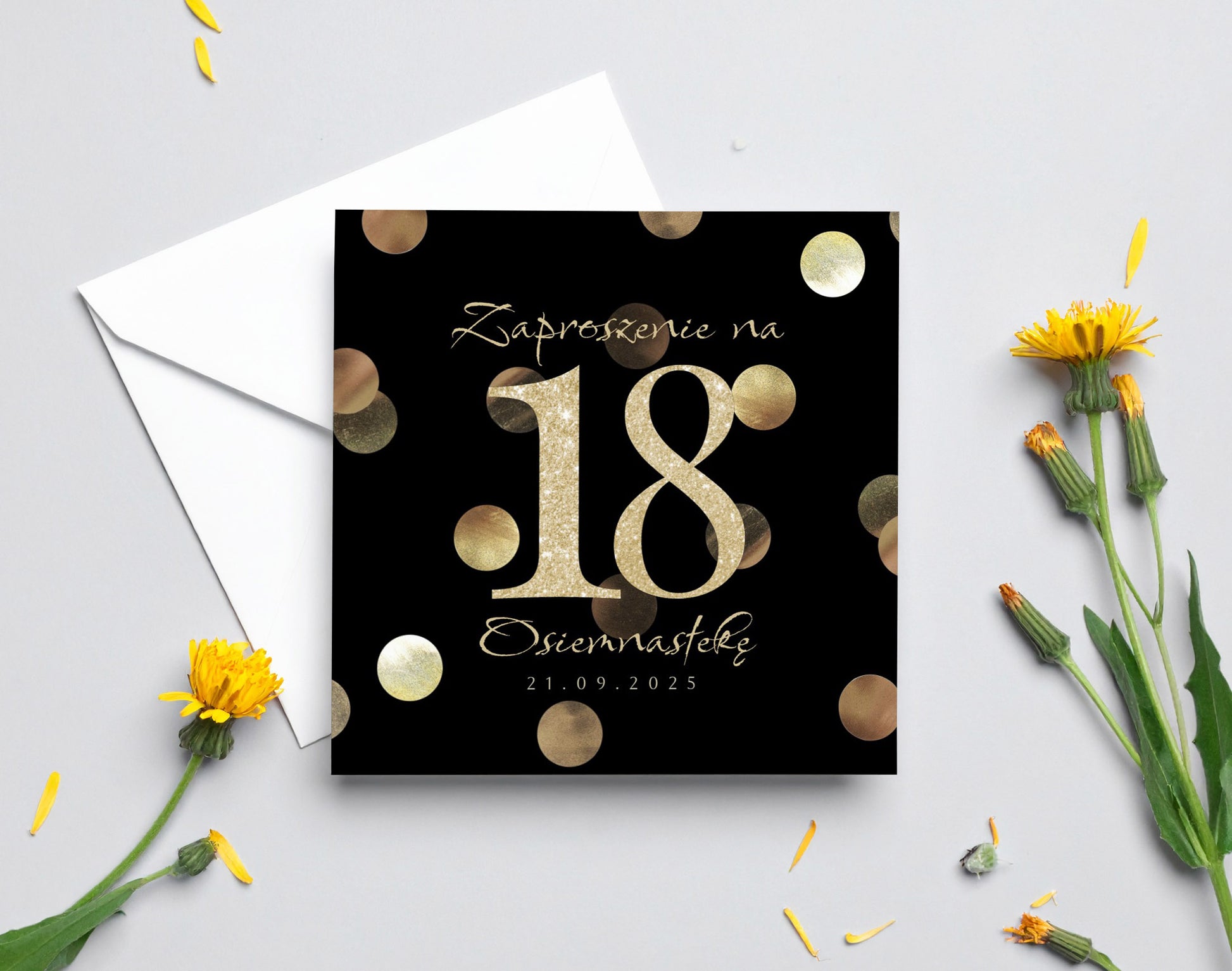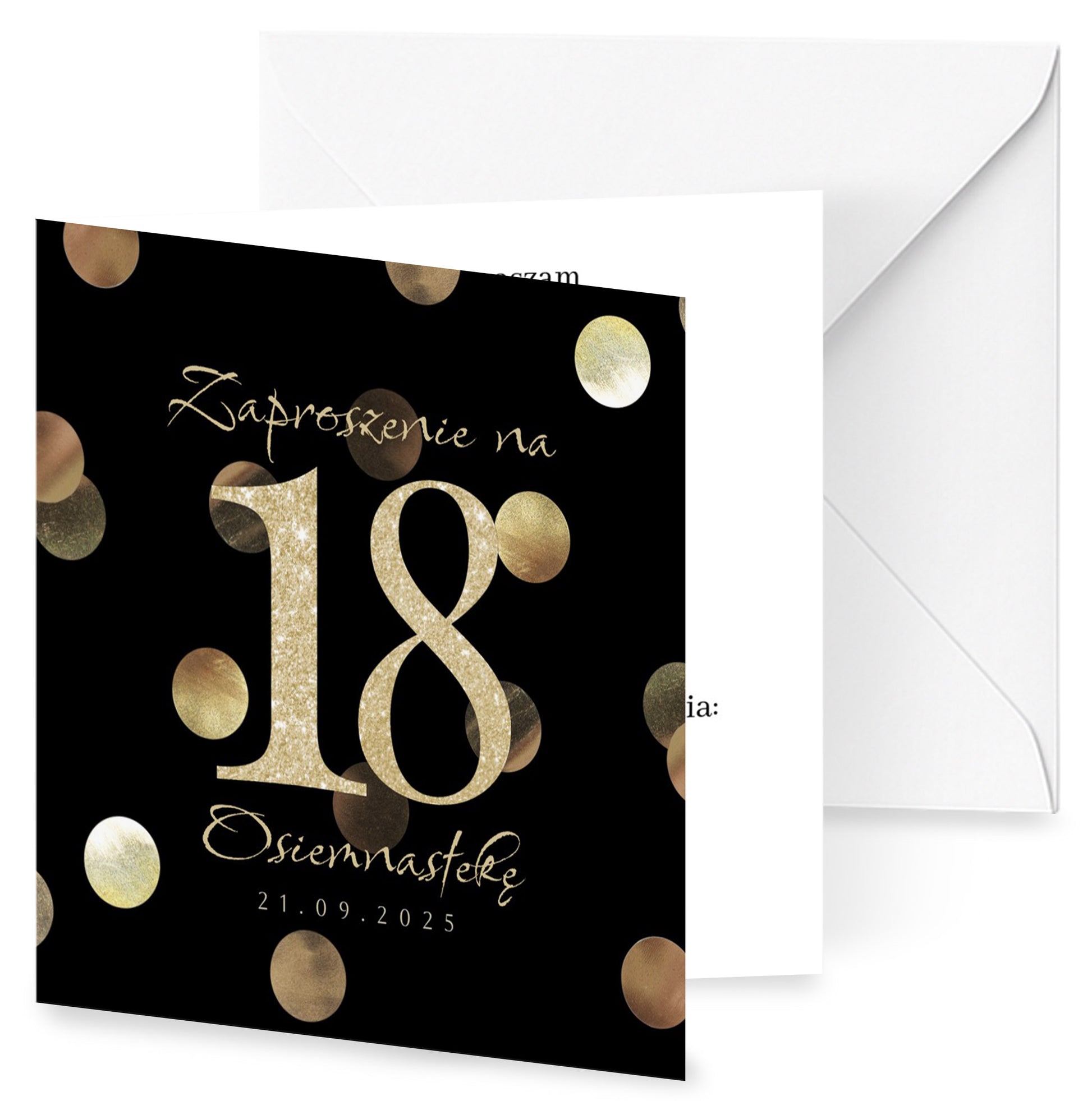 Zaproszenie na 18 urodziny 15x15 z kopertą - Konfetti